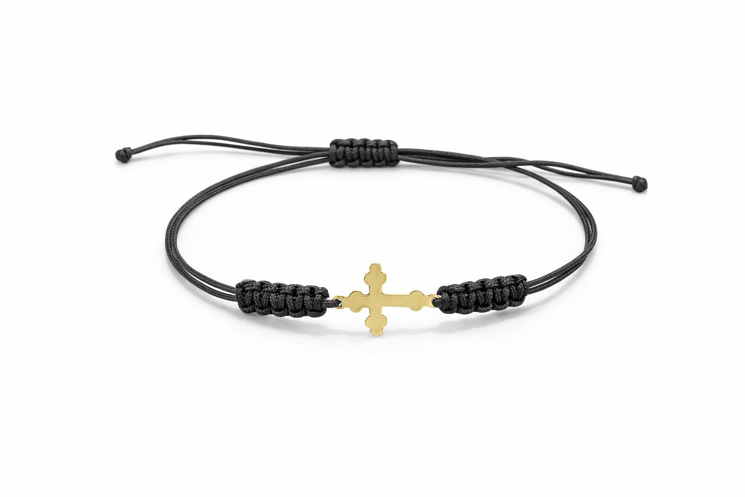 Brățară șnur negru finuță și pandantiv cruce de 14k