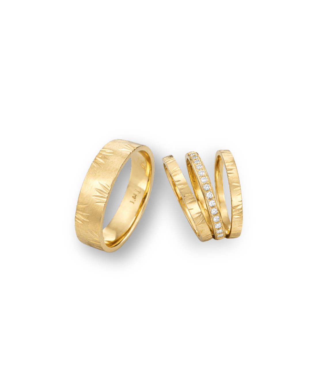 Descoperiți colecția noastră de verighete realizate la comandă, concepute special pentru a reflecta stilul și povestea dumneavoastră. Oferim modele unice și personalizate, din aur de 14K sau 18K, disponibile în trei nuanțe elegante: aur galben, alb, roz sau aur combinat cu frumusețea diamantelor sau a pietrelor semiprețioase .